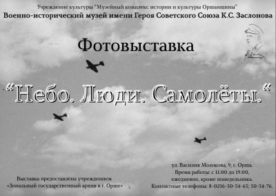 Фотовыставка «Небо. Люди. Самолёты», предоставленная учреждением «Зональный государственный архив в г. Орше»