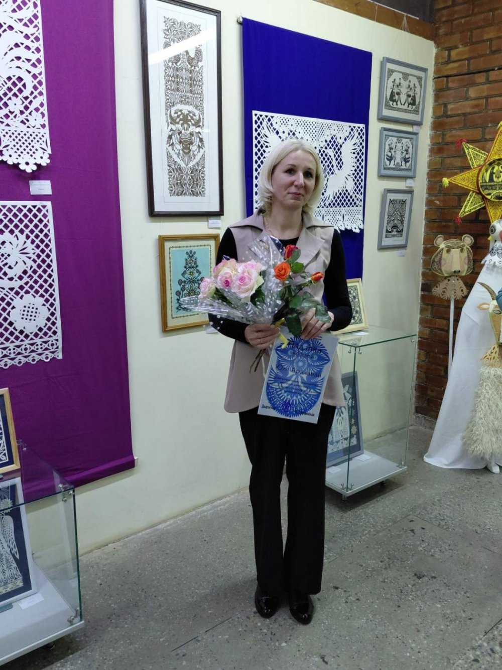 Падчас мерапрыемства таленавіты майстар з задавальненнем распавяла аб сваёй выставе, падзялілася сакрэтамі творчасці з усімі жадаючымі і правяла майстар-клас па выцінанцы "Анёл".