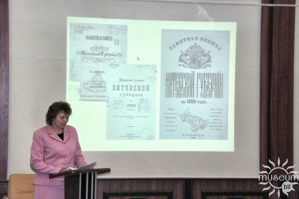 Head of the museum Irina Vodneva told about the results of the analysis of commemorative books 1861-1914, about the useful information for museum staffs, which they contain. She read her notice "The memorial books of the Vitebsk province" as a source on the history of Polotsk".